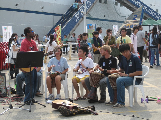 其中小孩子和年輕女生這兩個族群特別嗨,小孩子是看到這麼大的船整個很興奮,女孩們是看到外國帥哥就尖叫著跑去拍合照,噢賣尬。